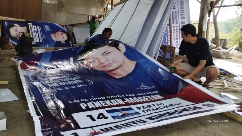 Baliho sebagai media kampanye dirinya. Caleg nomor 1 dari Partai Demokrat untuk Dapil Magetan 1 (Magetan-Panekan). Dalam baliho ditulis, “Saatnya yang Muda Mengabdi”.
