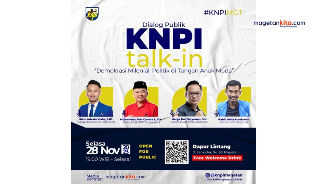 KNPI Magetan merasa terpanggil agar anak muda tak buta politik. KNPI Magetan menggelar diskusi yang menghadirkan para politisi muda. Dalam kesempatan perdana ini, KNPI Magetan mengundang Caleg Partai Demokrat Risto Ariesta Vialle, Caleg PDIP M. Dwi Candra, dan Caleg Partai Nasdem Marga Dwi Setyawan.