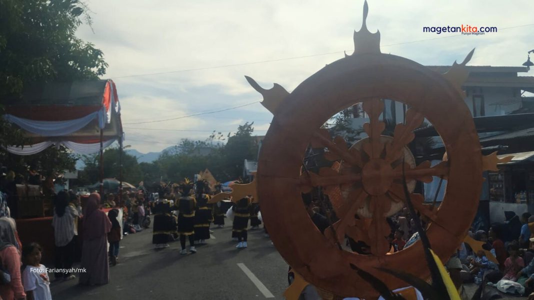 Magetan – Pawai Budaya di Kecamatan Ngariboyo beda dengan lainnya. Tak hanya sekadar karnaval atau pawai, muter keliling dengan kendaraan, kostum, dan atraksi yang menghibur. Pawai Budaya Kecamatan Ngariboyo, sarat pesan.