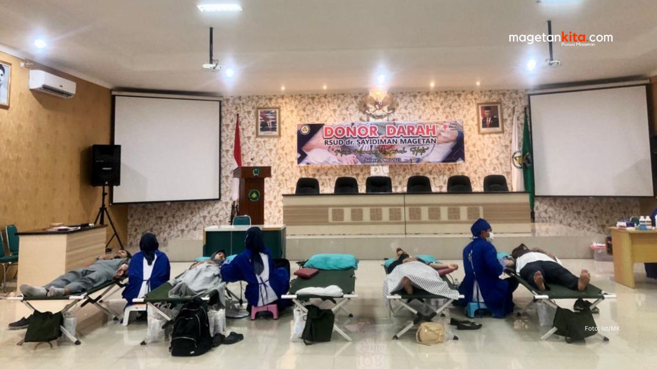 Magetan – Kolaborasi Rumah Sakit Umum Daerah (RSUD) dr.Sayidiman Magetan dengan Palang Merah Indonesia (PMI) Magetan gelar donor darah. Bertempat di ruang pertemuan baru RSUD, aksi tersebut merupakan bentuk kepedulian RSUD kepada paien yang membutuhkan transfusi darah.