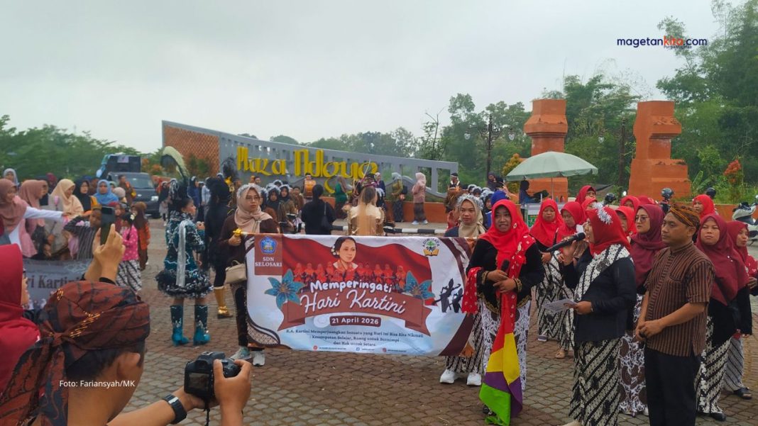 Magetan – Ratusan murid SDN Selosari mengikuti karnaval memperingari Hari Kartini, Rabu (22/4/2026).